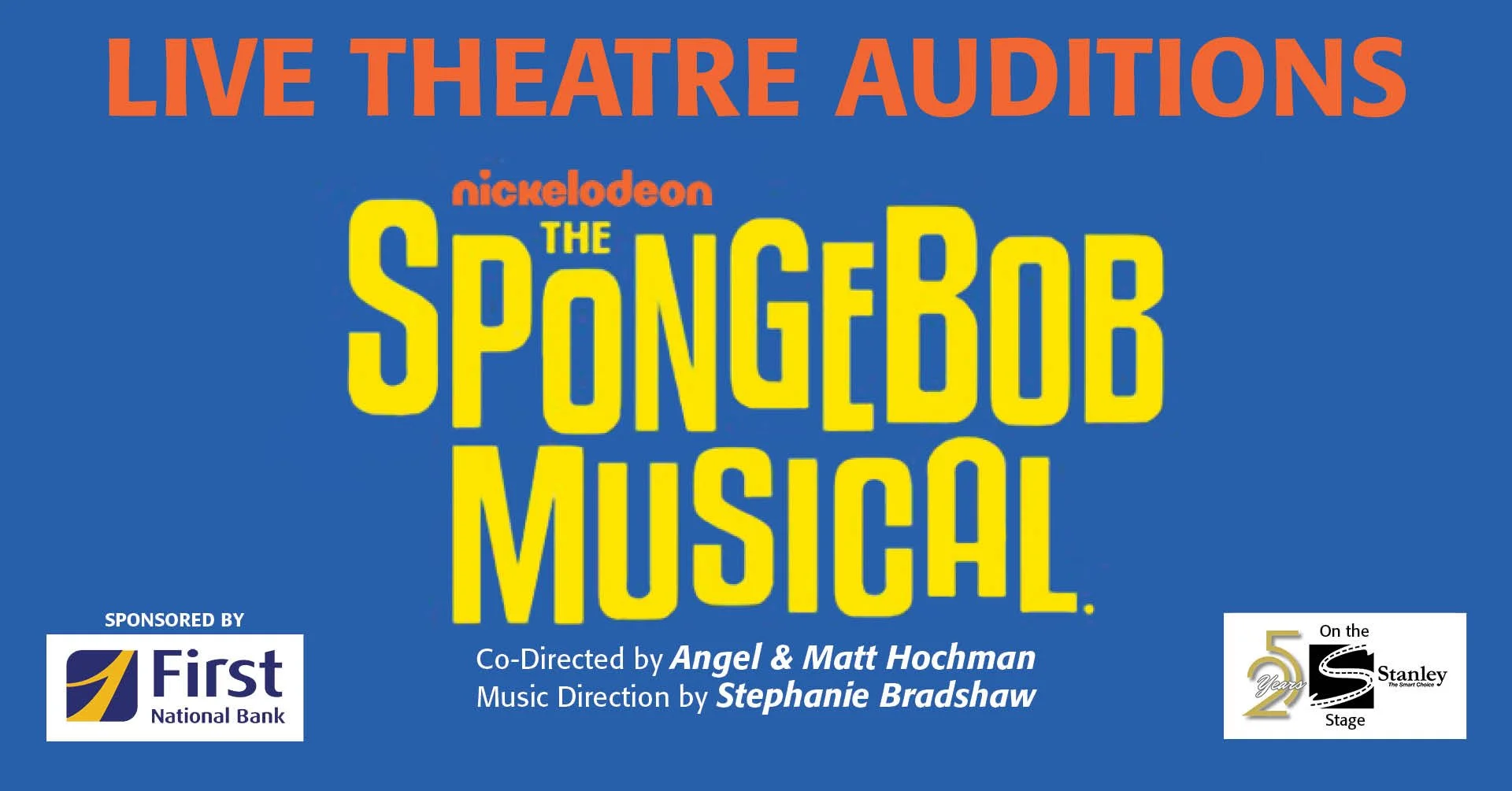 Plunge into this stunning all-singing, all-dancing, dynamic stage show! When the citizens of Bikini Bottom discover that a volcano will soon erupt and destroy their humble home, SpongeBob and his friends must come together to save the fate of their undersea world. With lives hanging in the balance and all hope lost, a most unexpected hero rises up. The power of optimism really can save the world!The SpongeBob Musical is based on the beloved animated series created by Stephen Hillenburg and features a book by Kyle Jarrow, with original songs by Yolanda Adams, Steven Tyler and Joe Perry of Aerosmith, Sara Bareilles, Jonathan Coulton, Alexander Ebert of Edward Sharpe & The Magnetic Zeros, The Flaming Lips, Lady A, Cyndi Lauper, John Legend, Panic! At the Disco, Plain White T’s, They Might Be Giants and T.I., and songs by David Bowie, Tom Kenny and Andy Paley. Additional lyrics are by Jonathan Coulton, with additional music by Tom Kitt. The musical production was conceived by Tina Landau.An exciting new musical featuring irresistible characters and magical music, this deep-sea pearl of a show is set to make a splash with audiences young and old. The future is bright, the future is bold, the future is The SpongeBob Musical.